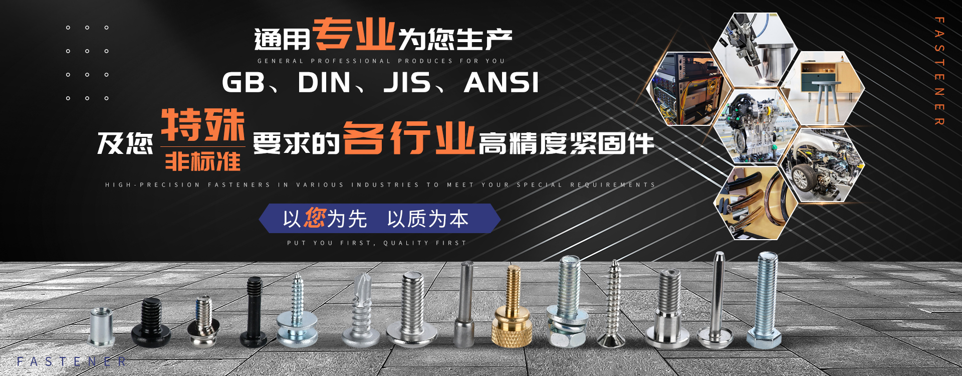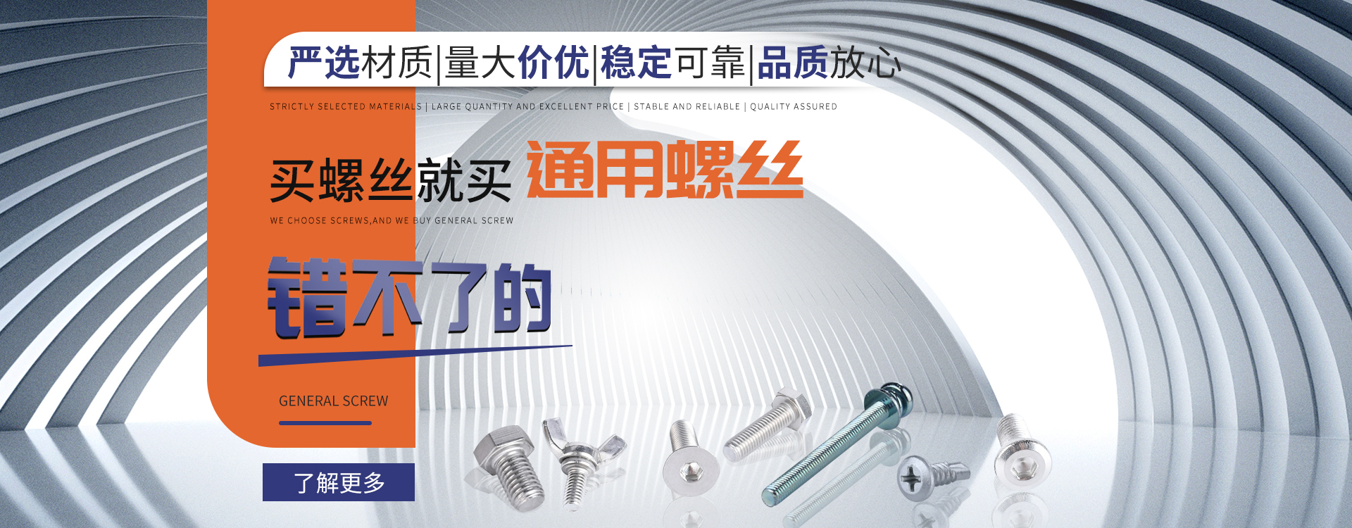 中山市通用螺絲制造有限公司成立于1987年,工廠坐落于廣東四小虎之一的中山市,北連廣州,毗鄰港澳。總占地面積14000m 2,足有兩個足球場。我司于1998年通過德國萊茵TUV ISO9002認(rèn)證,于2002年通過TUV ISO9001:2000認(rèn)證。2008年通過ISO 14000認(rèn)證。我司主營自攻螺絲、組合螺絲、機(jī)械螺絲、防松螺絲等標(biāo)準(zhǔn)和非標(biāo)準(zhǔn)件,我司既可按客戶的要求提交所需的產(chǎn)品,也可以為客戶量身定做所需產(chǎn)品。我司擁有專業(yè)的產(chǎn)品檢測隊(duì)伍和投影分析儀、金相、硬度計(jì)(韋氏和洛氏)、扭矩力測試計(jì)等完善的檢測設(shè)備,為電子、電器、五金塑料、衛(wèi)浴、家具、機(jī)械、汽配等行業(yè)提供符合歐盟質(zhì)量、環(huán)保要求的產(chǎn)品。2006年,我司自主開發(fā)的ERP管理系統(tǒng),使我們的生產(chǎn)和服務(wù)效率得到了極大的提高。 經(jīng)過三十多年地摸爬滾打,依靠眾多新老顧客的支持,通用螺絲逐漸成長為國內(nèi)知名的緊固件供應(yīng)商。了解更多 >>